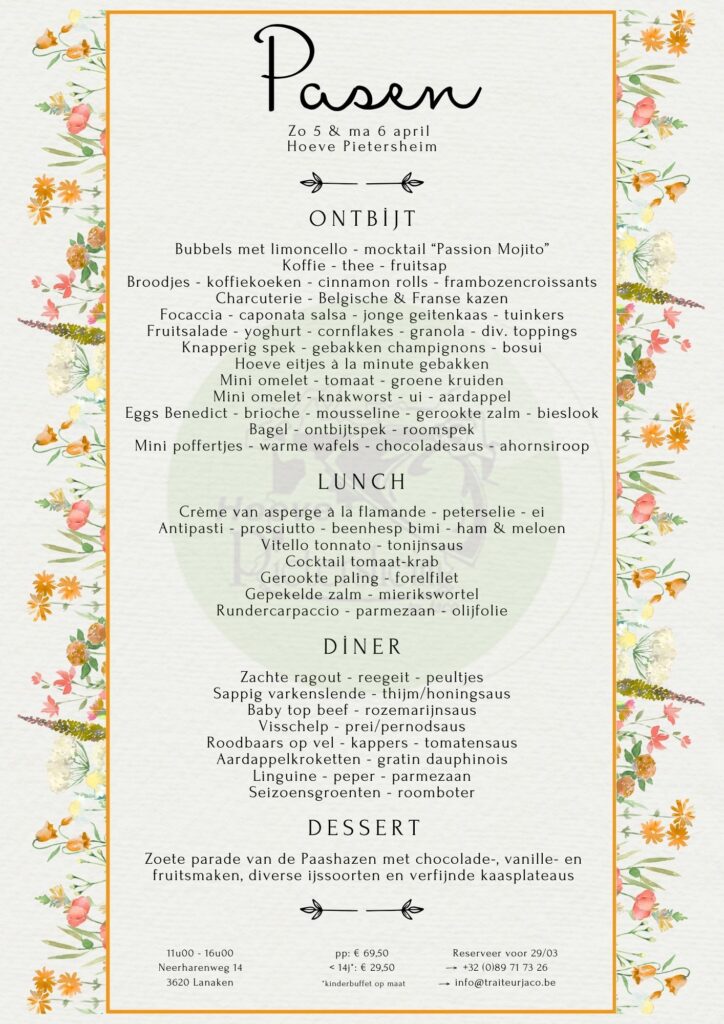 info@traiteurjaco.be • www.traiteurjaco.be • BE0677.836.592